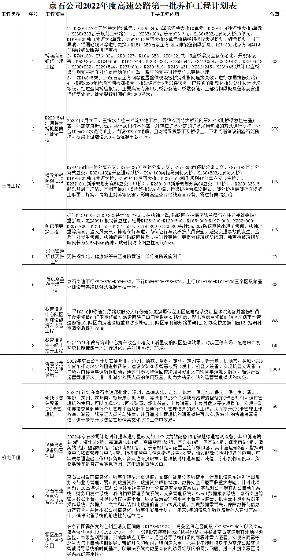 2022年第一批養(yǎng)護(hù)工程計(jì)劃