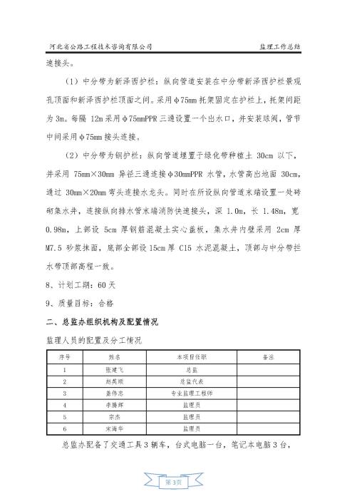 全線收費(fèi)站區(qū) 增設(shè)中水池工程監(jiān)理報告