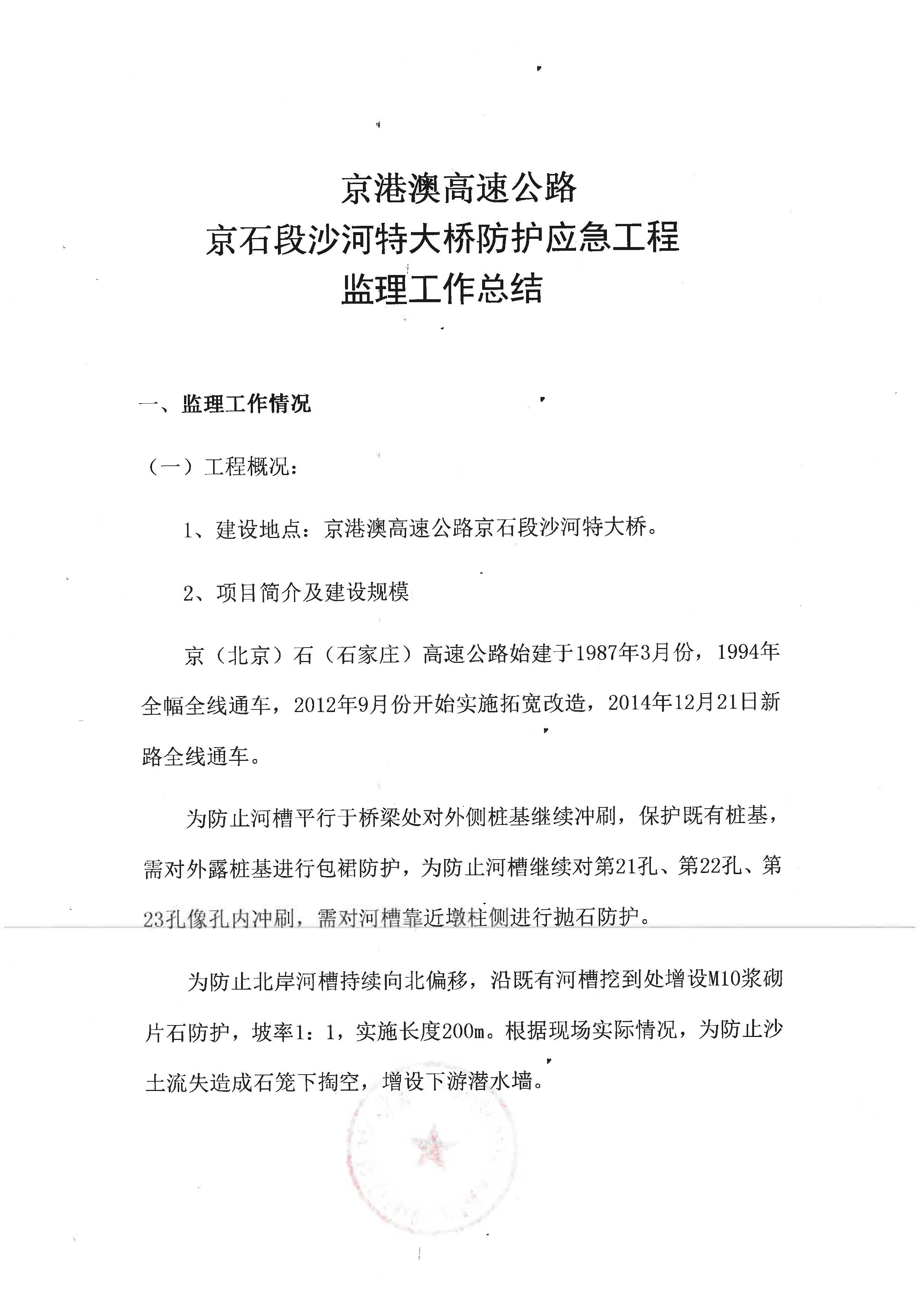 京港澳高速京石段沙河特大橋防護(hù)應(yīng)急工程監(jiān)理報告