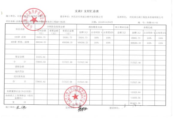 京港澳高速公路京石段橋涵病害處治工程QH-2標段工程支付證書