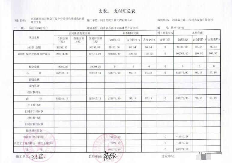 京港澳高速公路京石段中分帶綠化增設(shè)縱向灌溉管工程支付證書