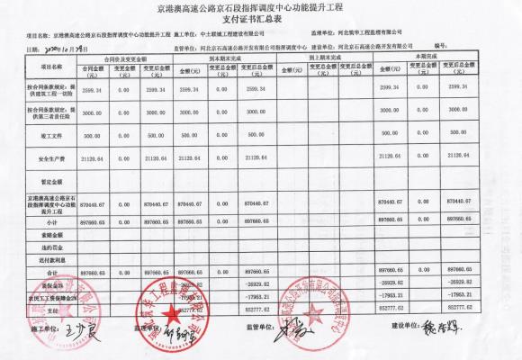 京港澳高速公路京石段指揮調度中心功能提升工程支付證書