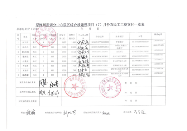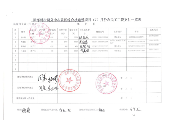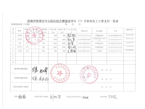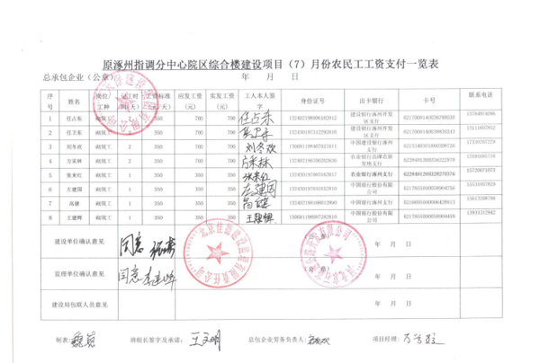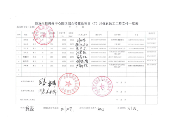 原涿州指調(diào)分中心綜合樓建設(shè)項(xiàng)目7月份農(nóng)民工工資發(fā)放公示