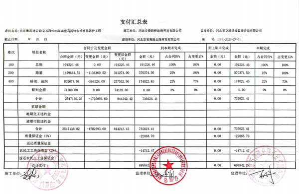 京港澳高速公路京石段南拒馬河特大橋樁基防護(hù)工程支付證書南拒馬支付證書