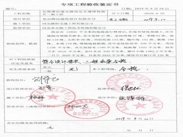 保定互通綠化提升二期工程專(zhuān)項(xiàng)鑒定書(shū)
