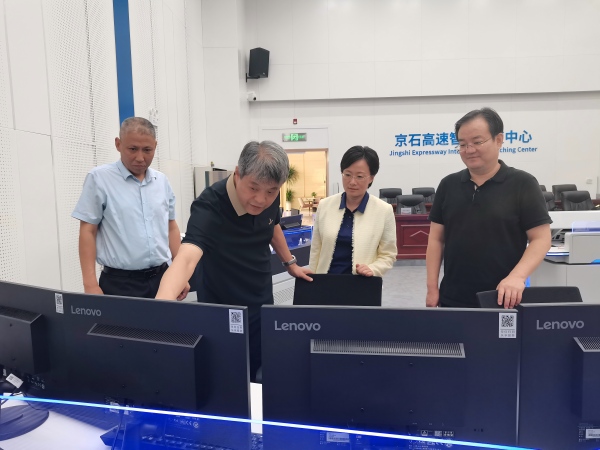 李昕、王曉娜通過外場視頻查看了全線車輛通行情況,聽取了宋罡對當前京石高速通行狀況及保通保暢措施的匯報,重點了解了易緩行路段的車流量數(shù)據(jù),并對互通路段所設計的導流線進行了評估探討。