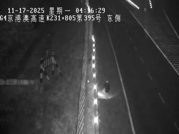 2025年11月17日3時(shí)57分,智慧調(diào)度監(jiān)控中心接到省中心電話通知,京石高速石家莊方向K233處快車道有行人走動(dòng),行人在車道走動(dòng)不僅違反了高速公路管理規(guī)定,更將自身生命安全置于險(xiǎn)境,同時(shí)也對(duì)過(guò)往車輛造成干擾,極易引發(fā)交通事故。