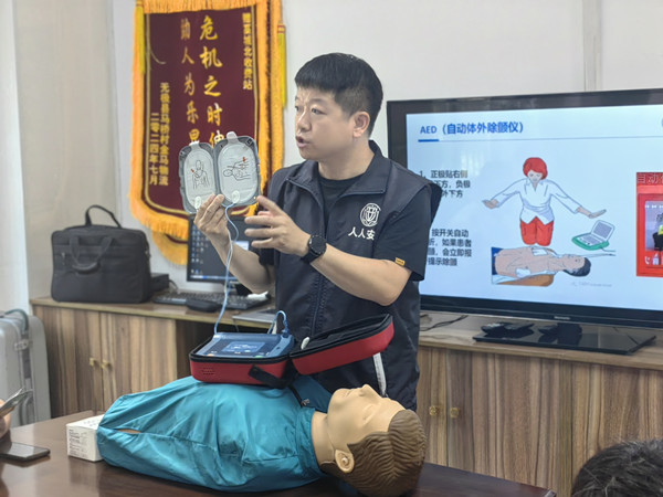 講座特邀安全健康教育網(wǎng)河北站宣教科科長解云龍擔綱主講。不同于傳統(tǒng)講座的單向輸出,解科長將智能教具與情景模擬深度融合,打造沉浸式學習場景?,F(xiàn)場救護與AED使用方法教學環(huán)節(jié)將講座推向高潮。解科長利用專業(yè)模擬人教具和自動體外除顫器(AED)設備,通過“理論講解+分步演示+實操訓練”三位一體的教學模式,詳細介紹心肺復蘇的操作流程與關鍵要點。他強調(diào),在心臟驟停的黃金四分鐘內(nèi),及時有效的心肺復蘇和AED使用是挽救生命的關鍵。職工們分組進行實踐操作,解科長逐一指導,糾正按壓深度、頻率及AED電極片粘貼位置等細節(jié)問題,確保每個人都能熟練掌握這兩項“救命技能”。“以前覺得急救很復雜,今天親身體驗后,心里更有底氣了,以后遇到突發(fā)情況也知道該怎么做了?!币晃粎⑴c實操的職工感慨道。