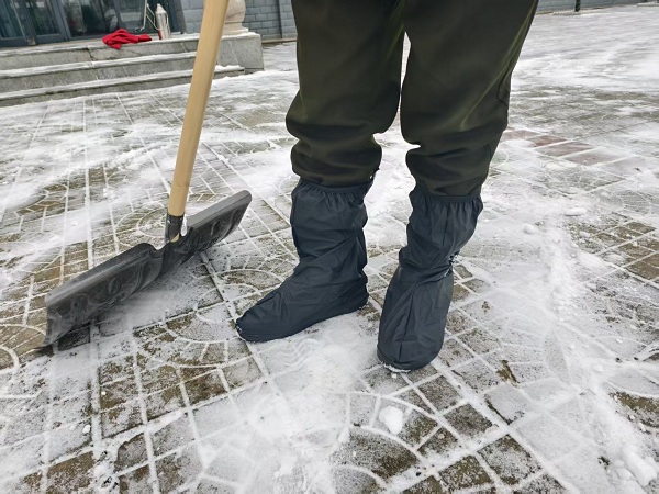 此次采購的鞋套兼具防水、防滑、耐磨特性,能夠有效應(yīng)對積雪、結(jié)冰路面,避免員工在戶外作業(yè)時滑倒受傷。發(fā)放現(xiàn)場,分工會工作人員有序組織,員工們領(lǐng)到鞋套后紛紛當場換上,隨即投身到車道除雪保暢工作中。皚皚白雪里,身著反光背心、腳踩防水鞋套的員工們手持鐵鍬、雪推板,分工協(xié)作、干勁十足,全力清掃車道內(nèi)的積雪。防滑鞋套讓大家在濕滑的路面上行動自如,大大提升了除雪效率,原本被積雪覆蓋的車道很快便恢復(fù)了暢通。