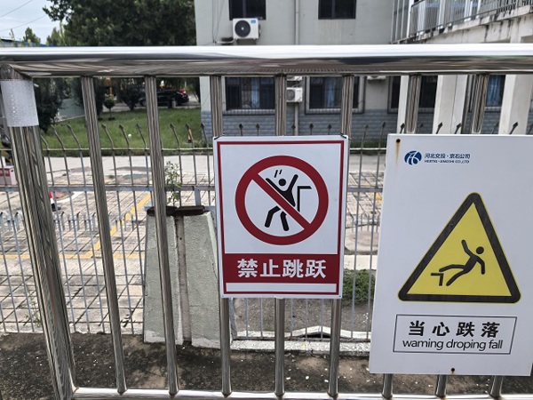 現(xiàn)場(chǎng)可見“限4人”標(biāo)識(shí)明確了樓梯同時(shí)承載的人員數(shù)量上限,防止因人員過(guò)度聚集引發(fā)樓梯荷載超標(biāo)問題;“禁止跳躍”標(biāo)識(shí)以醒目的圖案和文字,警示通行人員切勿在樓梯上做出跳躍等危險(xiǎn)動(dòng)作;“當(dāng)心跌落”標(biāo)識(shí)則時(shí)刻提醒大家注意腳下,防范跌落風(fēng)險(xiǎn)。